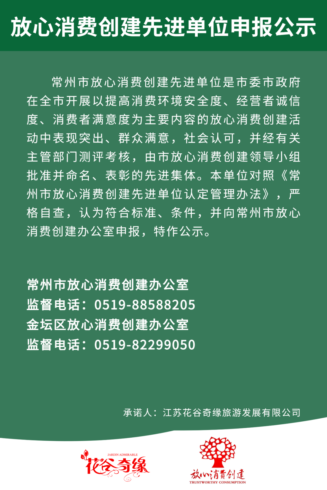花谷奇缘旅游景区创建常州市放心消费创建先进单位公示